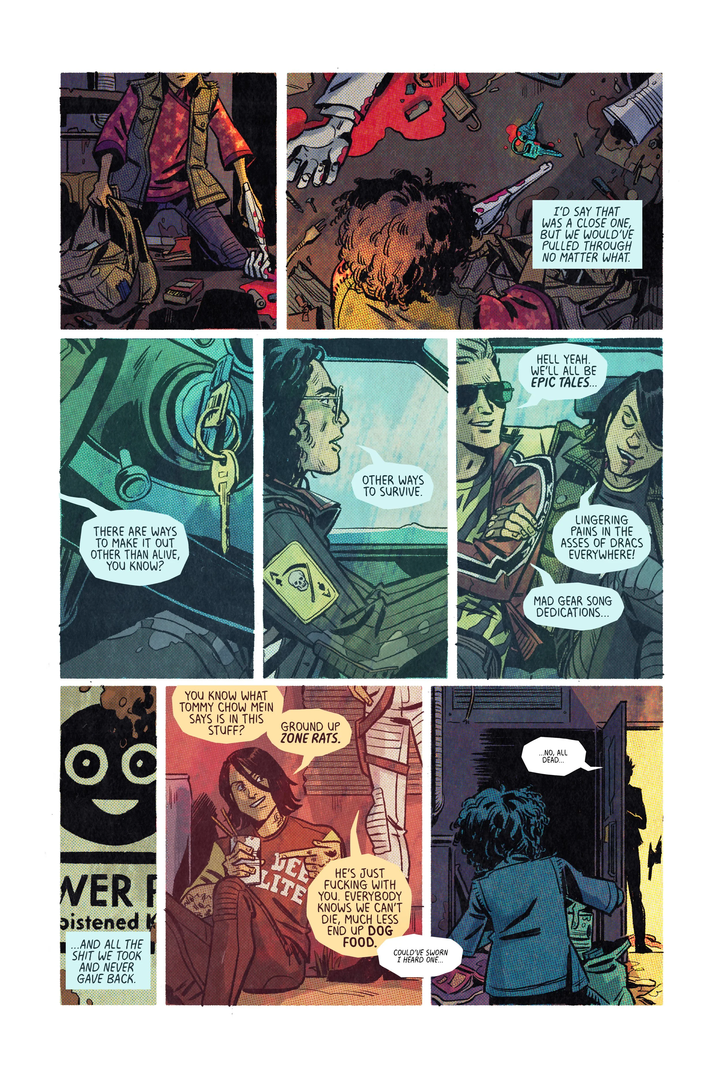 The girl wakes up to the aftermath of a firefight. This comic is part of an awesome anthology put together by the GraveRavers collective celebrating all that MCR fans have done with the Killjoys world and characters. You can get the whole thing as an ebook on their website and support the Black Trans Advocacy Coalition while you’re at it.